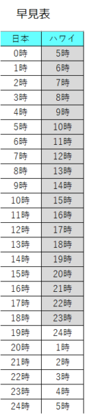 これは、日本とハワイ時間それぞれ、並べた方が分かりやすいので、下記の表を確認してください。